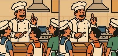 ဒါကြောင့်နောက်စိန်ခေါ်မှုအတွက်အဆင်သင့်ဖြစ်ပြီလား။ မီးဖိုချောင်တွင်ချက်ပြုတ်သည့်အတန်းများပြုလုပ်နေသောစားဖိုမှူး၏ပုံနှစ်ပုံကိုအနီးကပ်ကြည့်ပါ။ ပထမတစ်ချက်မှာဤပုံများသည်အတူတူပင်ဖြစ်ပုံရသည်။ သို့သော်သင်ပိုမိုနက်ရှိုင်းစွာဖော်ပြထားပါကပုံတွင်လိမ္မာပါးနပ်စွာဝှက်ထားသောကွဲပြားမှု 3 ခုကိုသင်သတိပြုမိလိမ့်မည်။ သူတို့ကိုသင်အားလုံးကို 19 စက္ကန့်သာရှာတွေ့နိုင်သလား။