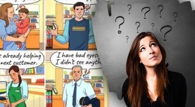 သင်လုပ်ရမှာကအောက်ဖော်ပြပါပုံကိုကြည့်ပြီးစတိုးဆိုင်ရှိလူတစ် ဦး ၏ပိုက်ဆံအိတ်ကိုခိုးယူသည်ကိုဆုံးဖြတ်ရန်ဖြစ်သည်။ ပုံဖော်ထားသည့်လူသုံး ဦး သည်အမှန်တရားကိုပြောနေခြင်းဖြစ်သည်, သို့သော်သူတို့ထဲမှတစ်ယောက်ကလိမ်နေခြင်းဖြစ်သည်။