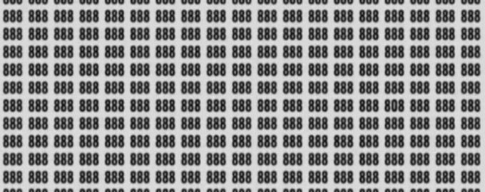 ပဟေ les ိများနှင့် optical oldusions များသည်ပျော်စရာကောင်းရုံသာမကသင်၏ IQ နှင့်လေ့လာရေးလုပ်ပိုင်ခွင့်များကိုစစ်ဆေးရန်အတွက်ကြီးမားသောနည်းလမ်းများလည်းဖြစ်သည်။ အကယ်. သင်သည်ဤလှည့်ကွက်ကိုသုံးစက္ကန့်အတွင်းသင်ဖြေရှင်းနိုင်လျှင်မြင့်မားသောဥာဏ်ရည်ရှိသည်။ သင်၏တာဝန်မှာနံပါတ် 808 ကိုရှာဖွေရန်ဖြစ်သည်။ ၎င်းသည် sequence 888 တွင်ဝှက်ထားပါသည်။