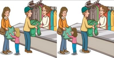 နောက်စိန်ခေါ်မှုအတွက်အဆင်သင့်ဖြစ်ပြီလား။ မိသားစု 0 င်နေတဲ့အဝတ်အစားစတိုးဆိုင်ရဲ့ပုံနှစ်ပုံကိုကြည့်ပါ။ ပထမတစ်ချက်မှာရုပ်ပုံများသည်အတူတူပင်ပုံရသည်, သို့သော်အနီးကပ်ကြည့်ပါ။ သူတို့ကသေးငယ်သောကွဲပြားခြားနားမှု 3 ခုကိုဖုံးကွယ်ထားသည်။ သူတို့ကို 25 စက္ကန့်လောက်မှာတွေ့နိုင်တယ်လို့ထင်လား။ မင်းဘယ်လောက်ချွန်ထက်နေတယ်ဆိုတာစစ်ဆေးကြည့်ရအောင်။