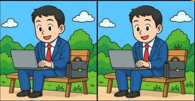 ဒါကြောင့်နောက်စိန်ခေါ်မှုအတွက်အဆင်သင့်ဖြစ်ပြီလား။ ပန်းခြံတစ်ခုတွင်လက်ပ်တော့ပ်တွင်အလုပ်လုပ်နေသောလူ၏ပုံနှစ်ပုံကိုကြည့်ပါ။ ပထမတစ်ချက်မှာရုပ်ပုံများသည်အတူတူပင်ဖြစ်ပုံရသော်လည်း၎င်းတို့တွင်ဝှက်ထားသောကွဲပြားခြားနားမှု 3 ခုရှိပြီးသင်၏အလုပ်မှာ၎င်းတို့ကိုအမြန်ဆုံးရှာဖွေရန်ဖြစ်သည်။ 75 စက္ကန့်အတွင်းမှာသူတို့ကိုသင်ရှာတွေ့နိုင်မလား။ ဤပဟေ and ိကိုစမ်းကြည့်ပါ။ သင်၏အမြင်အာရုံသည်မည်မျှလျင်နေသည်ကိုစစ်ဆေးပါ။