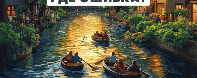 ဤတွင်လှပသောညနေခင်း City ရှုခင်းကိုပုံဖော်သည့်ပုံတစ်ပုံရှိသည်။ လူတွေကအိမ်တွေကြားမှာလူတွေလှေတွေမျောနေတဲ့အိမ်တွေကြားမှာစီးဆင်းနေပါတယ်။ ပထမတစ်ချက်မှာပုံရိပ်သည်ပုံမှန်ပုံရသည်, သို့သော်အမှန်မှာ၎င်းသည်ကြီးမားသောအမှားတစ်ခုရှိသည်။