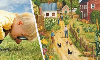 သင်ပုံကိုဂရုတစိုက်ကြည့်ရှုခြင်းနှင့်ဤနေရာတွင်မှားသောအရာကိုစဉ်းစားသင့်သည်။ အမှားကိုသစ်တောမှကလေးများ၏အဝတ်အစားများနှင့်ဖုံးကွယ်ထားနိုင်သည်။