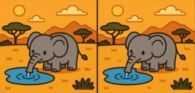 ဒါကြောင့်နောက်စိန်ခေါ်မှုအတွက်အဆင်သင့်ဖြစ်ပြီလား။ ဆင်သောက်ရေ၏ပုံနှစ်ပုံကိုကြည့်ပါ။ ပထမတစ်ချက်မှာသူတို့အတူတူပင်ပုံရသည်, သို့သော်အနီးကပ်ကြည့်ပါ။ ပုံတွင်ဖုံးကွယ်ထားသည့်ကွဲပြားခြားနားမှု 3 ခုရှိသည်။ သူတို့ကို 29 စက္ကန့်အတွင်းမှာအားလုံးကိုရှာတွေ့နိုင်မလား။ မင်းဘယ်လောက်ချွန်ထက်နေတယ်ဆိုတာစစ်ဆေးကြည့်ရအောင်။